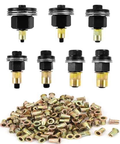 Set med 7 nitmuttrar, för M3, M4, M5, M6, M8, M10, M12 nittänger, nit-set, nitmuttrar, nitar set nitmutterverktyg, för nitmutterverktyg manuell nitmaskin