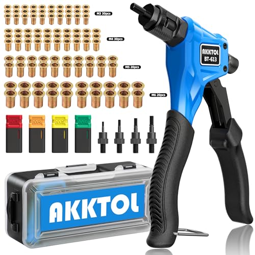 AKKTOL Nitmuttertång, set med nitmuttrar, gängnitade tänger, set med 100 nitmuttrar M6, M5, M4, M3, 4-taggar och bärfodral, ettnitmuttertång, enhandsmutter-nitmutter tång, verktyg