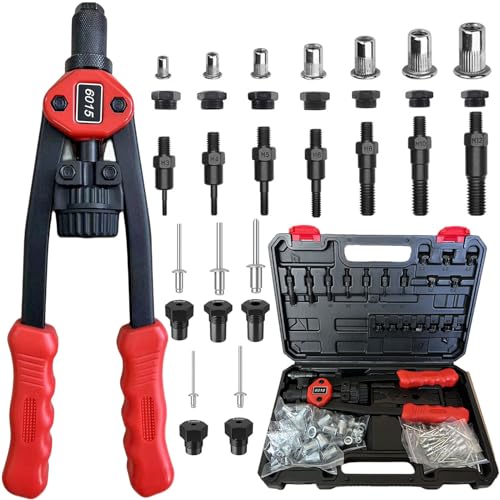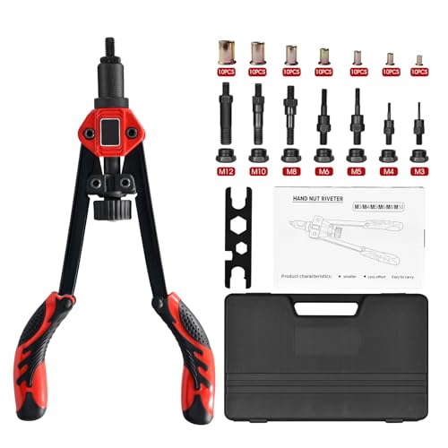 Nitmuttertång, set med nitmuttrar inklusive 70 nitmuttrar M3 M4 M5 M6 M8 M10 M12 professionella nitmuttrar set med dubbla handtag nitmuttertång, 33 tum nitänger set med 7 utbytbara nitstift