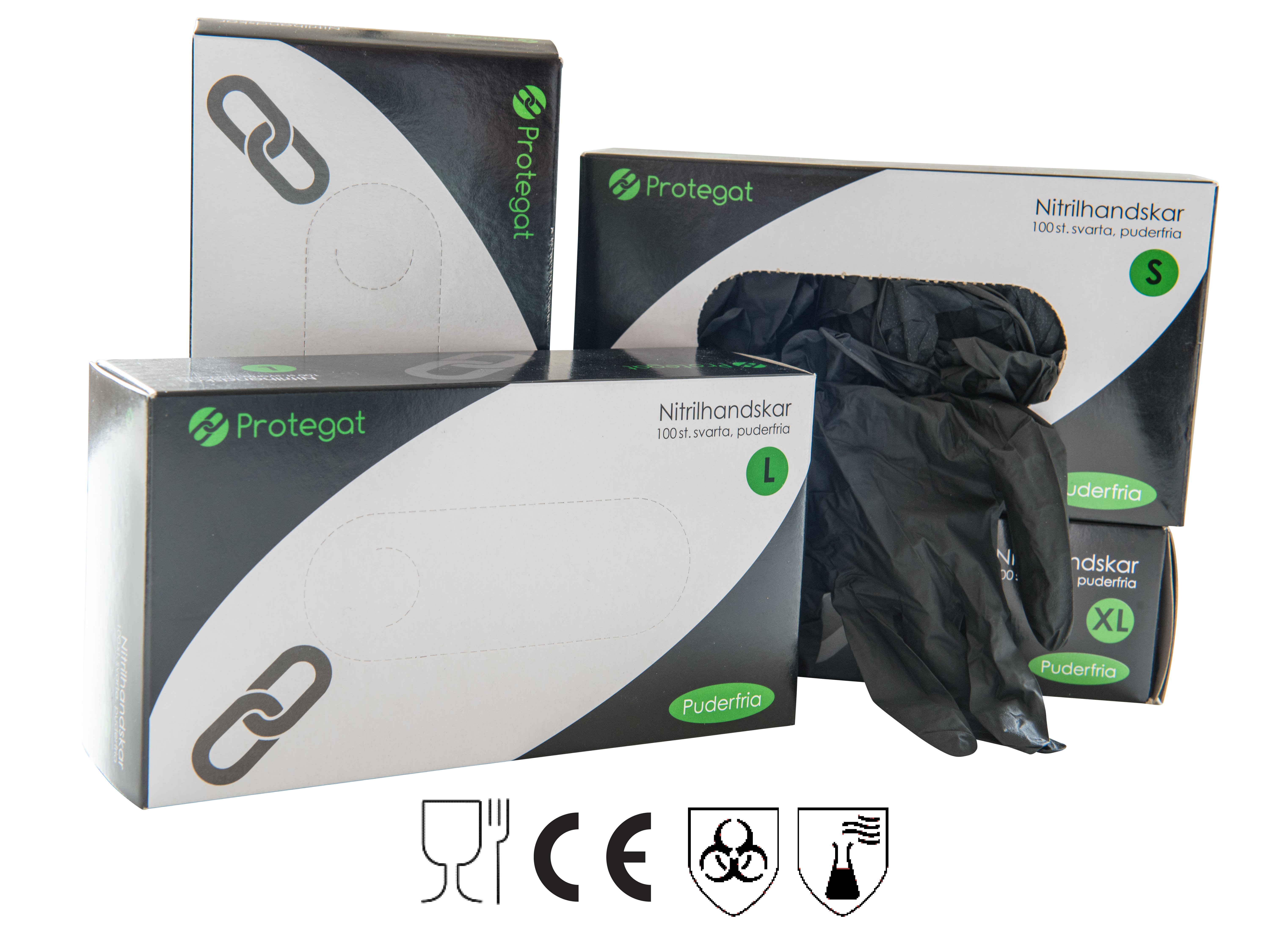 Engångshandske Nitril Puderfri Svart Stl. 9/L (100st)