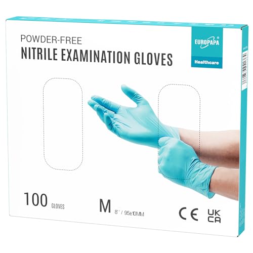 EUROPAPA® 100 x nitrilhandskar, engångshandskar, undersökningshandskar, nitrilhandskar, puderfria, utan latex, icke-sterila, latexfria engångshandskar (M, ljusblå)