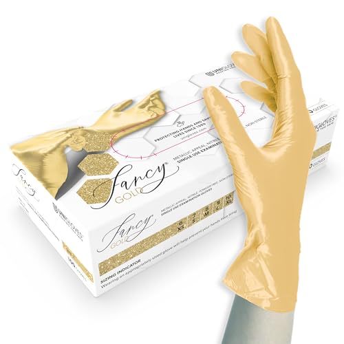 Unigloves FANCY guld nitrilhandskar, puderfria och latexfria, icke-sterila och livsmedelssäkra, skydd mot virus, svamp och bakterier, storlek S