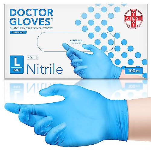 AIESI® Nitrilhandskar engångs puderfria blå för professionellt bruk DOCTOR GLOVES (Förpackning med 100 stycken) storlek L