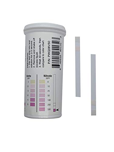 Nitrite 0 – 25 ppm, nithastighet 0 – 500 ppm två testremsor [flaska med 50 remsor]