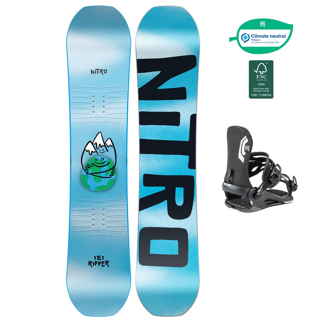 Nitro Snowboardpaket - Ripper Kids 121 + Charger Mini Ultra Black S
