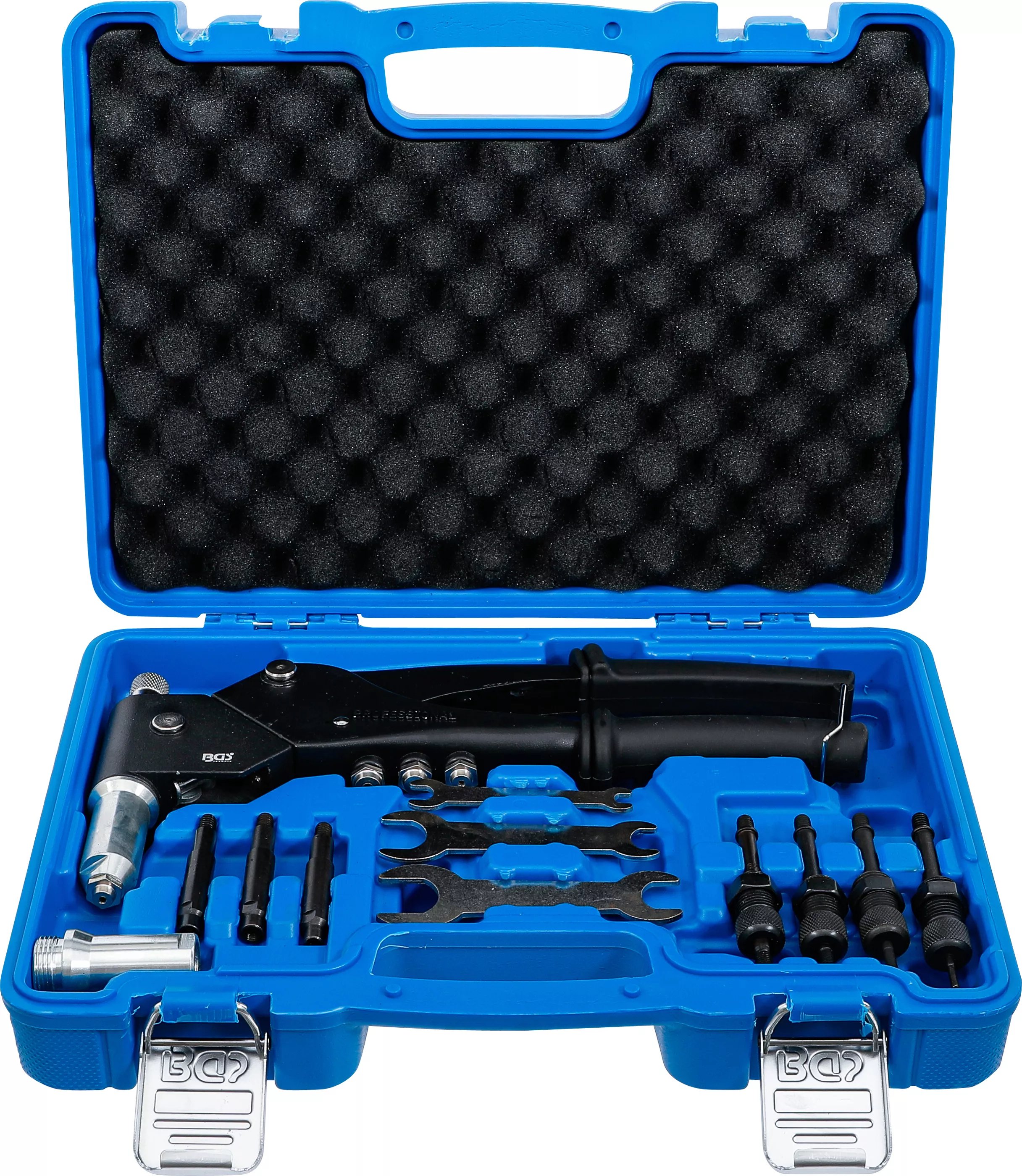 S&R Blindnitstångssats med 60 nitar: 2,4 mm, 3,0/3,2 mm, 4,0 mm, 4,8/5,0 mm Nittångssats med tänger och blindnitar, nittång i verktygslåda Blindnitstång
