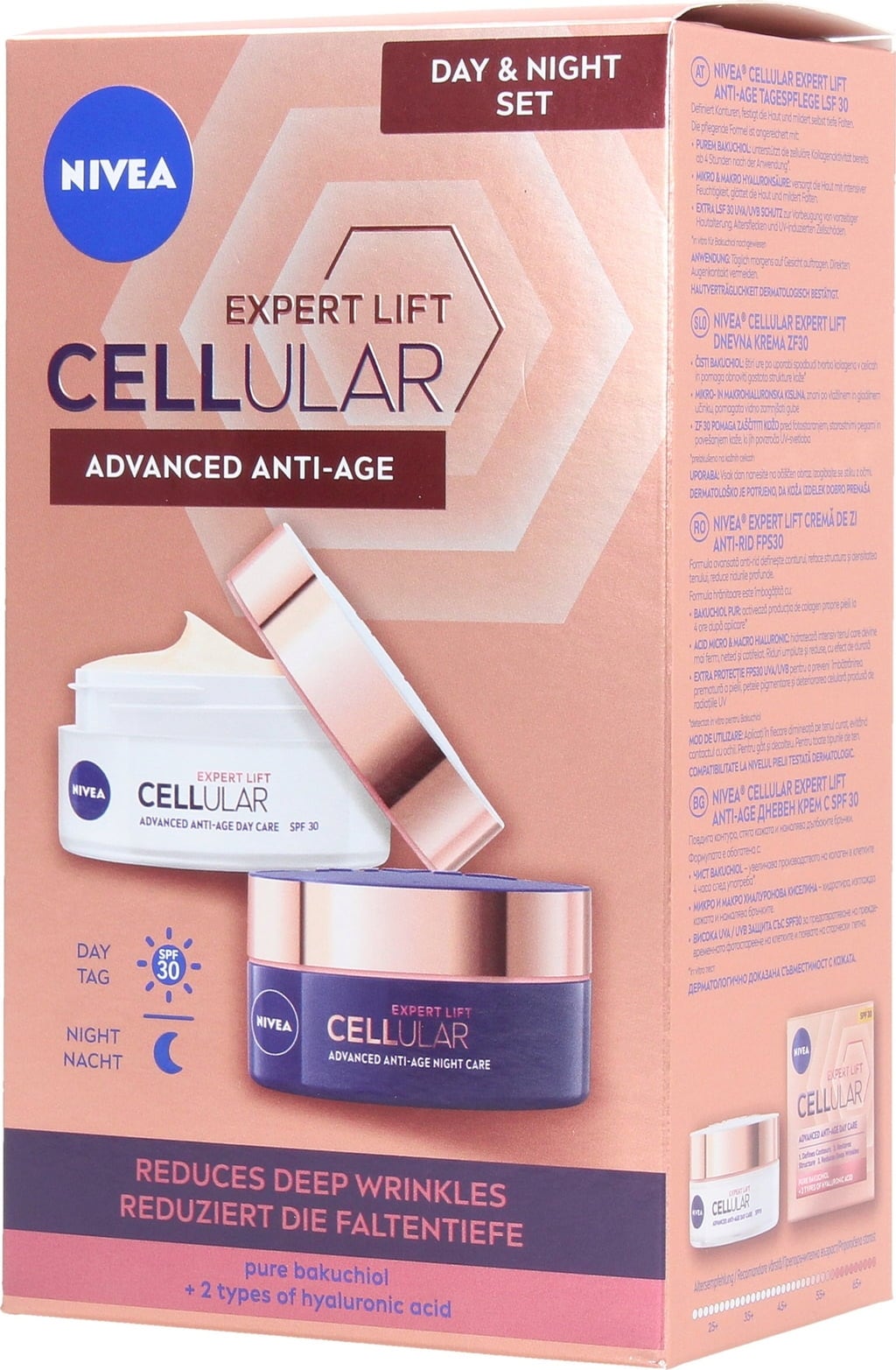NIVEA Hyaluron Cellular Filler (2 x 50 ml), anti-aging-krämer, presentset med FP30 dagkräm och nattkräm, uppstramande krämer med hyaluronsyra