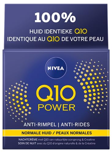 NIVEA Q10 Power Uppstramande nattvård (1 x 50 ml), anti-rynkkräm med Q10 Pure & Hyaluronsyra, kollagen booster anti-aging vård, fuktgivande ansiktskräm alla hudtyper