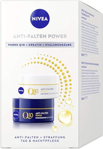 NIVEA Q10 Anti-Wrinkle Power ansiktsvård Set, presentset med SPF 15 dagkräm (50 ml) och nattkräm (50 ml), vårdset med anti-aging-effekt