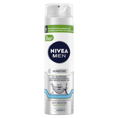 NIVEA MEN Sensitive mjukgörande rakgel 3-dagars ansiktshår för män med kamomill, 200 ml