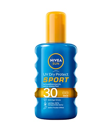 NIVEA SUN UV Dry Protect Sport Solspray SPF 30 (200 ml), 100% transparent solskydd speciellt för idrottare, svettbeständig och extra vattentät solkräm