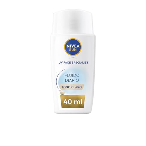 NIVEA SUN Daglig vätska med SPF 50 + 40 ml Ansiktssolskyddsmedel med Hyaluronsyra, Lykokalkon A och Niacinamid, Ultralätt Ansiktssolkräm, Solskydd med matt effekt, Ljus Ton