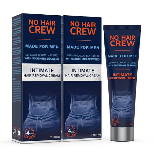 NO HAIR CREW Intim Hårborttagningskräm för Män Pack om 2 (2 x 100 ml) – Skonsam och Effektiv Hårborttagning för Pubis, Pung och Ljumske – Utan Rakbränna, Dermatologiskt Testad