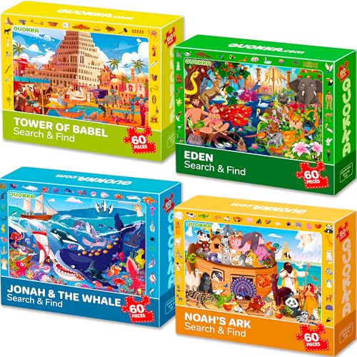 QUOKKA 60-Bitars Pussel Från 4 5 6 År - 4 Set Ramar Pusselspel För Pojkar Och Flickor - Tower Of Babel - Noaks Ark - Eden Leksaker För Barn I Åldrarna 5 Till 7 År
