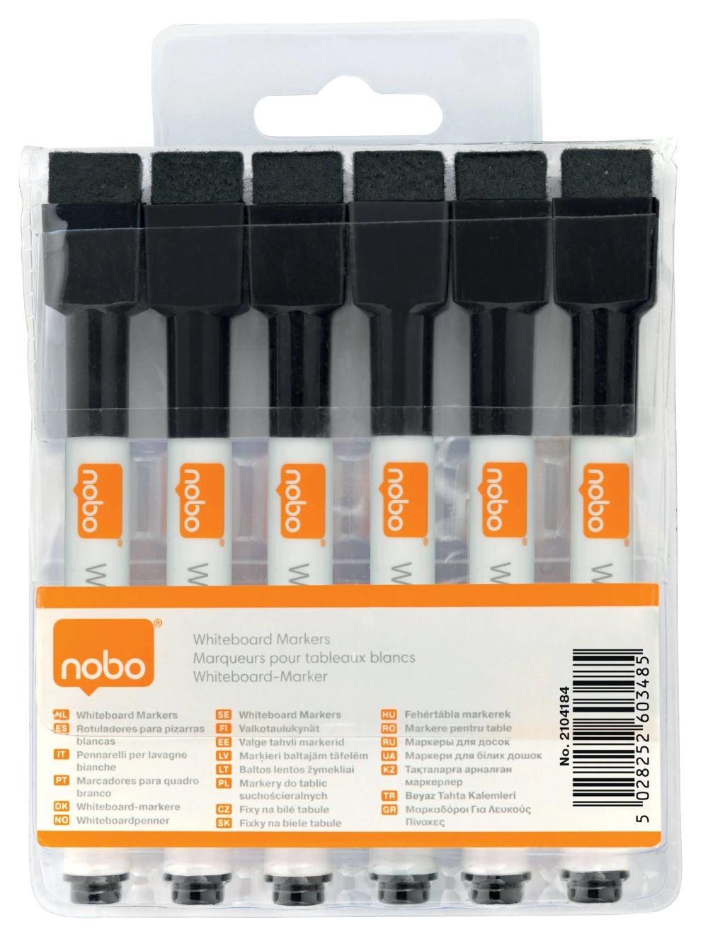 Whiteboardmarker Nobo Sort Med Magnet - (6 Stk.)