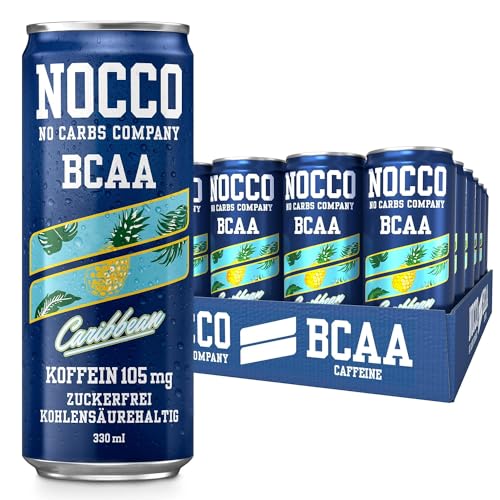 NOCCO BCAA Caribbean 12 x 330ml | Proteinreiches Energy - Getränk ohne Zucker-Vitamin- och Koffein-Boost | Kohlensäurehaltige Sportgetränke für Muskelleistung und - regeneration