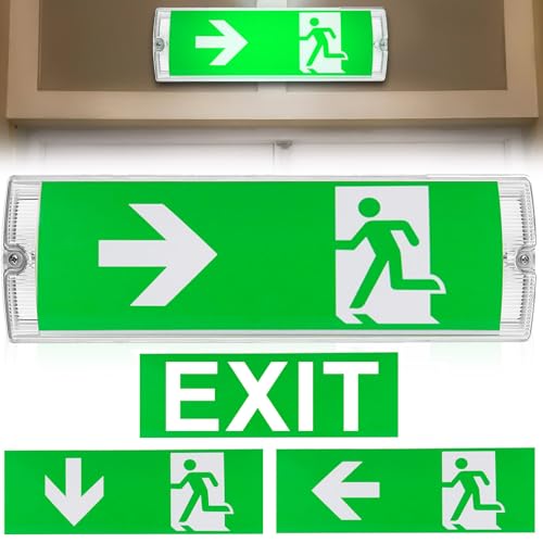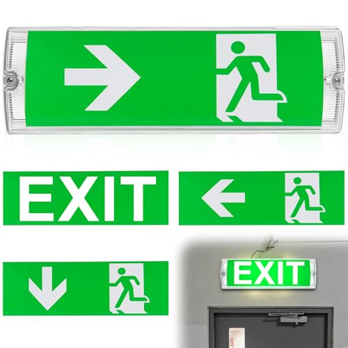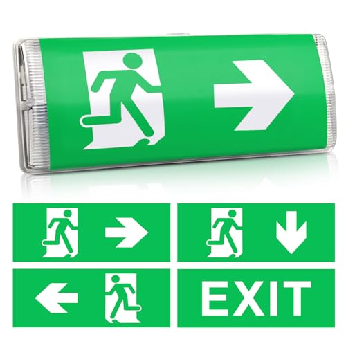 GOMETY LED-nödbelysning, LED utrymningsväg IP65 vattentät nödutgångsljus med nödströmsström 3H upplyst nödutgångsskylt, 4 piktogram, riktningspilar