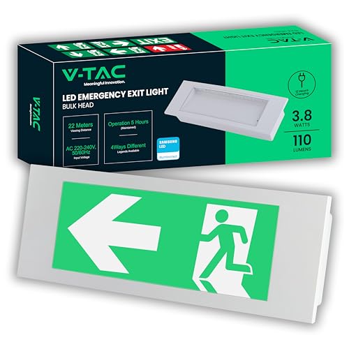 V-TAC nödbelysning LED 3,8 W – inbyggd LEDväggmonterad takmontering för säkerhet och nödsituationer med 25 000 mAh batteri – enkel väggmontering – IP20 – nödutgångsbelysning – utrymningsvägsljus