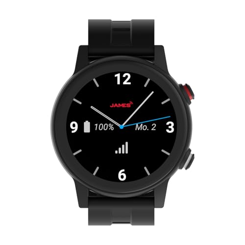 James B6 Nödsamtal och säkerhetsklocka för seniorer, falligenkänning, nödsamtalsknapp och GPS-plats, hälsofunktioner, Svart, 33.5 x 57.8 x 14.7 mm, Modern