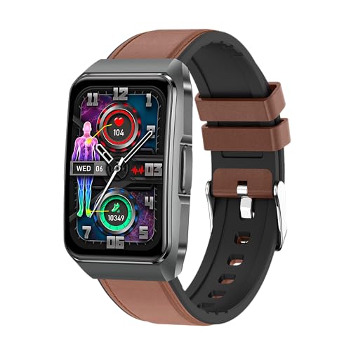 Knauermann NEO 2 Band EKG hälsoklocka med blodtrycksmätning, SpO2, puls, sömnanalys, telefonfunktion och nödsamtal, brunt koskinnarmband