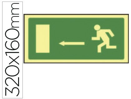 Syssa piktogram utgångssignal nödsituation vänster pil i fotoluminescerande pvc 320x160 mm