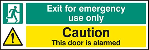 Caledonia skyltar 22065G utgång för nödsituation användning endast försiktighet dörren är alarmerad skylt, självhäftande vinyl, 300 mm x 100 mm