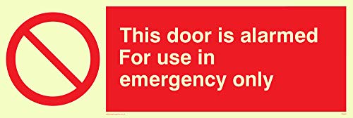 Vikingskyltar PA600-L31-PV "This Door is alarmed for användning endast i nödsituation", fotoluminescerande klistermärke, 100 mm H x 300 mm B