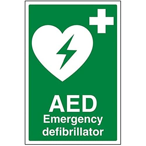 VSafety AED nödsituation defibrillatorskylt – 150 mm x 200 mm – 1 mm styv plast