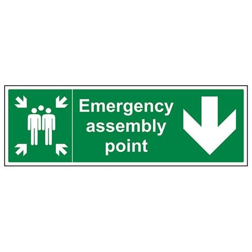 VSafety 17030BP-R Brandmontering punktskylt, nödsituation montering punktpil nedgång, styv plast, landskap, 600 mm x 200 mm, grön
