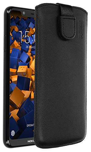 mumbi äkta läderfodral kompatibel med Nokia 5.1 Plus skal läder väska Case Wallet, svart