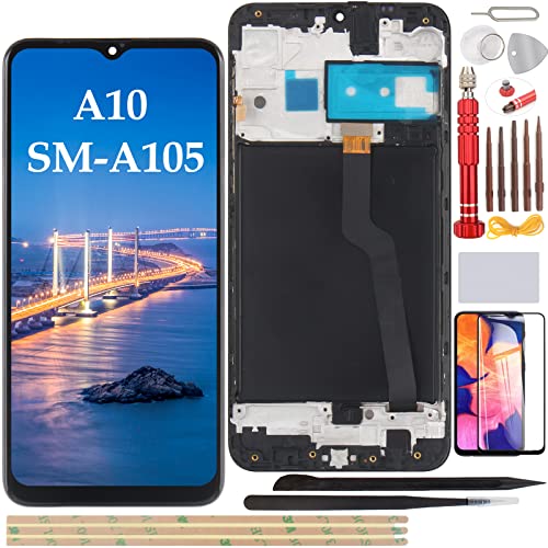YHX-OU 6,2 tum för Samsung Galaxy A10 2019 A105F SM-A105F LCD-skärm Taktil digitaliseringssats + installationsverktyg (Dual SIM)+1 härdat glas (Svart+ram)[Inte för A10S A10E]