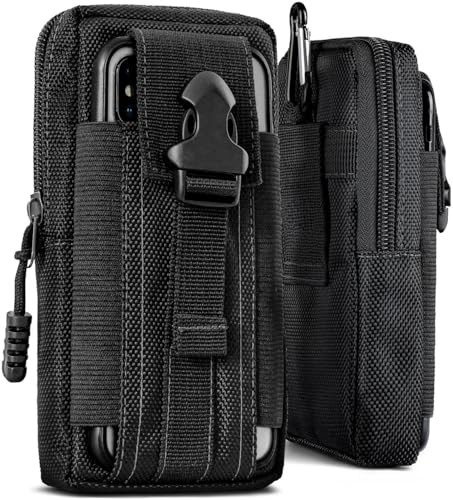 ONEFLOW Överlevnadsfodral kompatibelt med Nokia 105 (2019) – mobiltelefonbältesväska av nylon med karbinhake, taktisk EDC-väska med bälteshållare, utomhus mobiltelefonfodral – svart