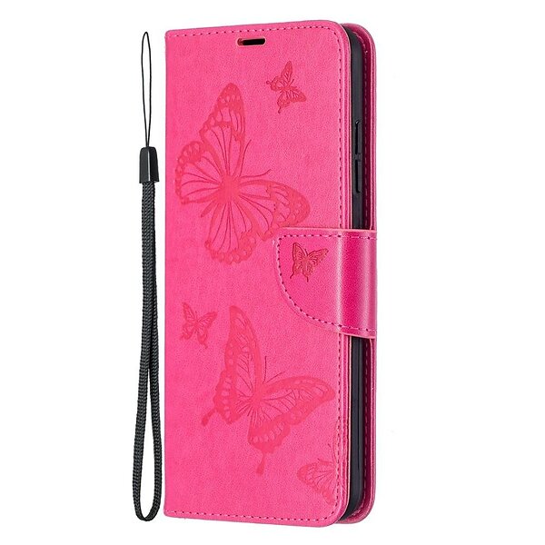 Nokia 1,4 Läderplånbokväska & strapfjäril rosa