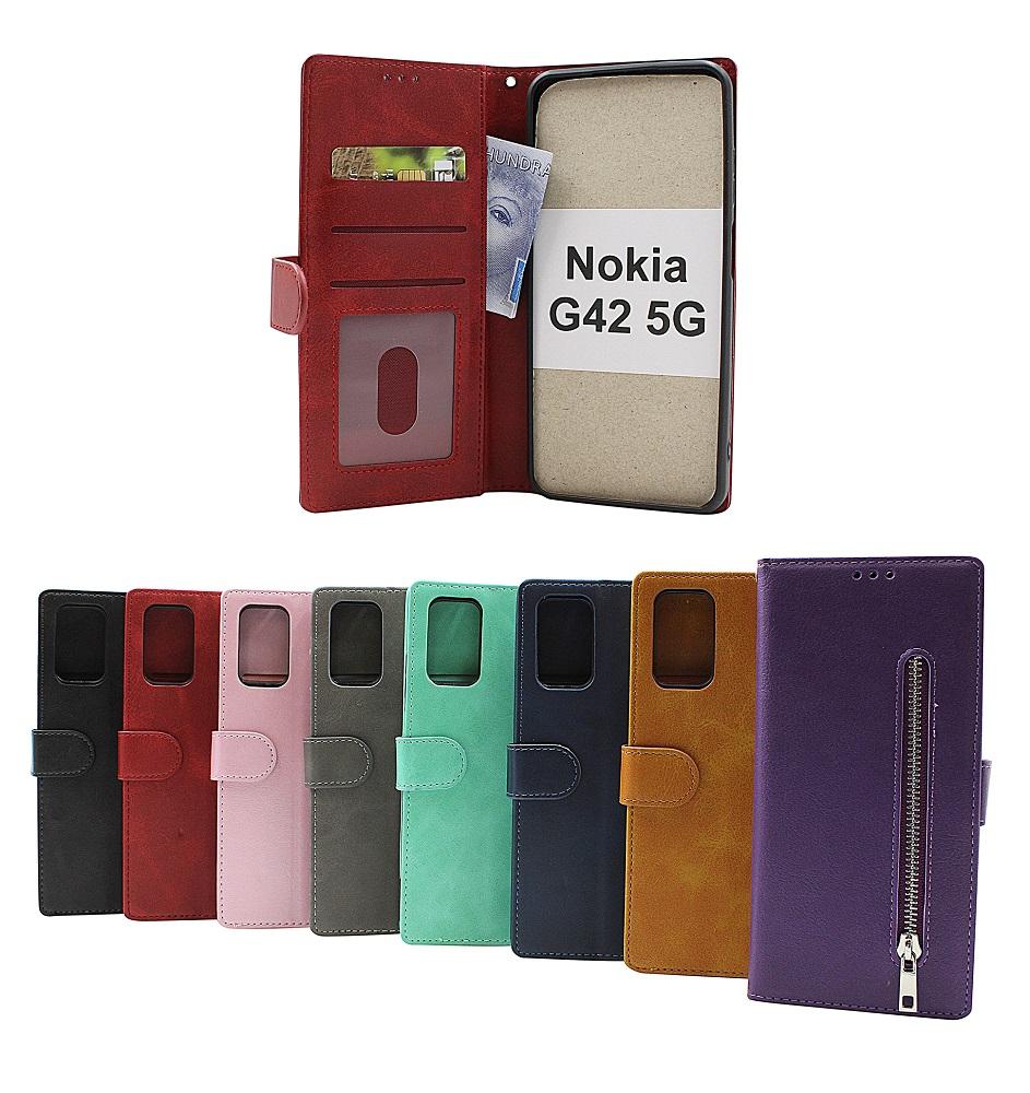 Zipper Standcase Wallet Nokia G42 5G (Brun)