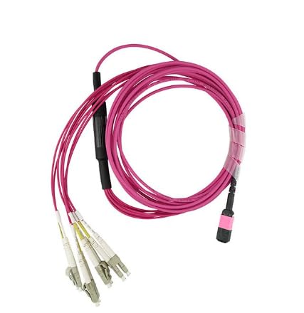 Kompatibel Alcatel-Nokia 3HE13896AA-5 BlueOptics LWL Breakout Patchkabel, MPO/UPC, 4xDuplex LC/UPC, 5 meter, Multimode G50/125µm, OM4, Markenfaser, 3,0 mm LSZH Magenta, 8 Kerne und MPO Stecker ohne Pi
