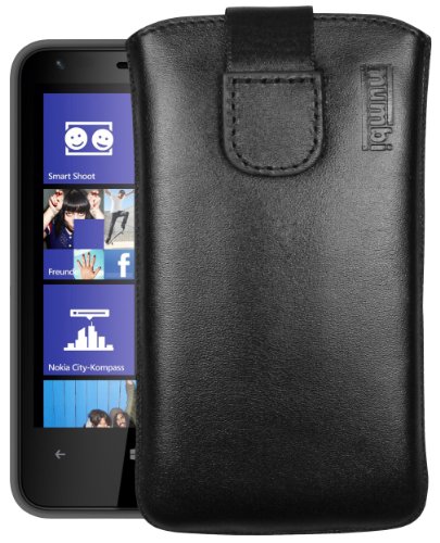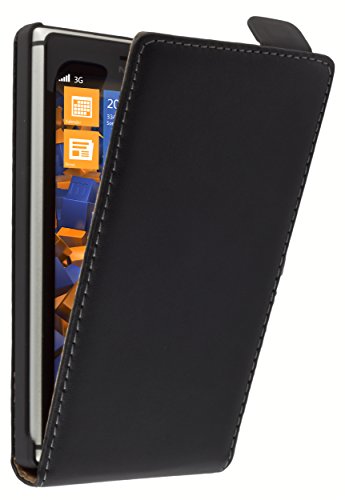 mumbi äkta läderfodral kompatibel med Nokia Lumia 620 skal läder väska Case Wallet, svart