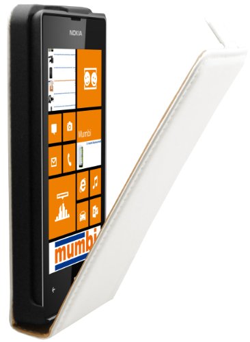 mumbi Äkta läderfodral kompatibelt med Nokia Lumia 620 fodral läderfodral fodral plånbok, vit