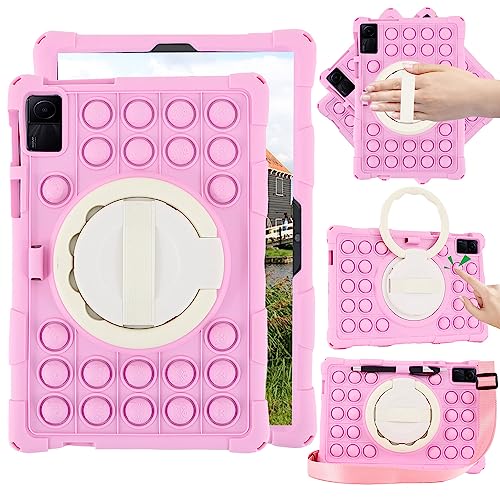 Sfulatdc Silikonfodral med 360 roterande ställ handtag/axelrem surfplatta sött fodral kompatibelt med Nokia T20, Lenovo Tab M10 Plus (3:e generationen) 10,6 tum ros