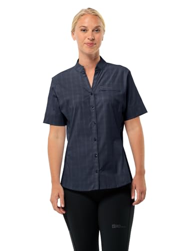 Jack Wolfskin Norbo S/S skjorta W blus, midnattsblå/rutig, L dam, Nattblå/kakel, L