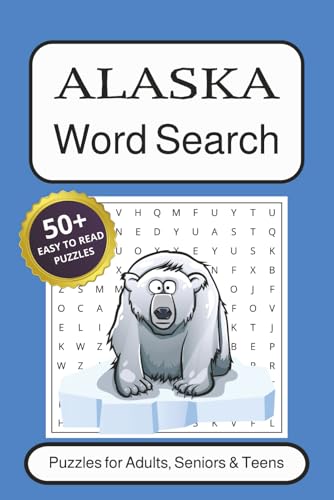 Alaska Word Search Puzzle Book: Word Searches with Easy to Read Print About Alaska, The North, Winter Conditions and More | 6x9 inches 110 pages | 50+ ... … Gift for vacations, Holidays and Free Times