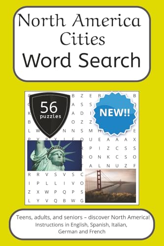 North America Word Search Puzzle Book: Words Search With Easy To Read Print about USA, Canada, Alaska and Travel | 6x9 inches, 112 pages | 56 puzzles. ... English, Spanish, Italian, French and German.