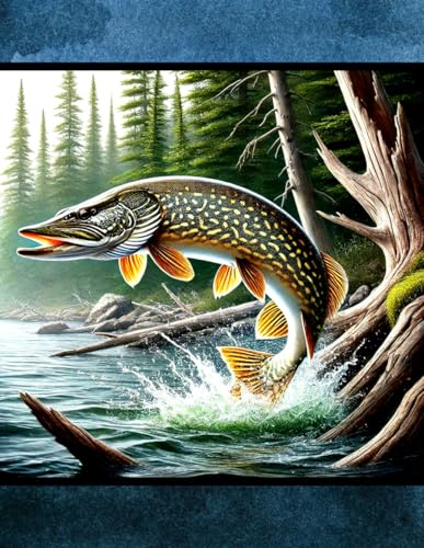 Jumping Northern Pike Novelty Notebook: 8.5" X 11" 140 Pages Wide Ruled Paperback