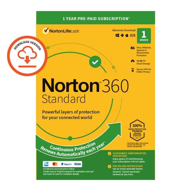 Norton 360 Standard - PC / MAC / ANDROID / IOS, Years 1 YEAR, Devices: 1 DEVICE, Location: USA/CAN ONLY