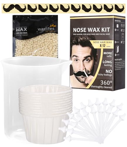 EOPUOZS Nose Wax-kit, näshårsvax, näsvax med 100 g vaxbönor, 20 näshårstavar, 10 behållare, 1 st 100 ml mätkopp, 10 skäggdekaler, näshårsborttagare vax för män och kvinnor