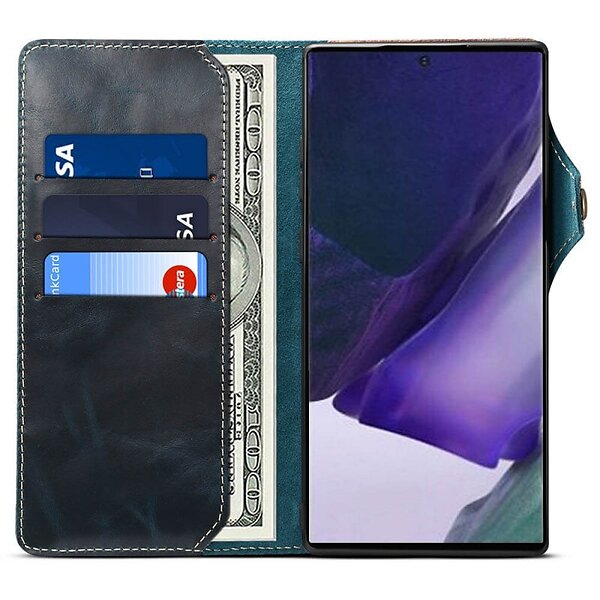Mobilplånbok 3-kort äkta läder Galaxy Note 20 Ultra Blå