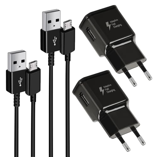 2-Pack USB Laddare, Snabbladdare Strömadapter med Micro USB Data- och Laddningskabel kompatibel med Samsung Galaxy S6/S6 Edge/S6 Edge +/S7/S7 Edge/S5/S4/S3/S2/Note 4/5/A03/J7/J5/J3 (Svart)