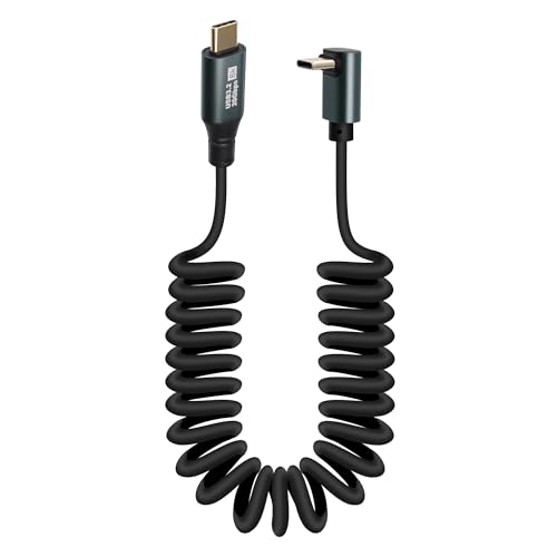 GELRHONR Spiral USB C-kabel 100 W, 20 V 5 A snabbladdning USB typ C fjäder spiralkabel för bil, 90 grader typ C kontakt till kontakt Carplay kabel 20 Gbps, 8K@60 Hz, för i/S23 S22 S21, Note 20 10