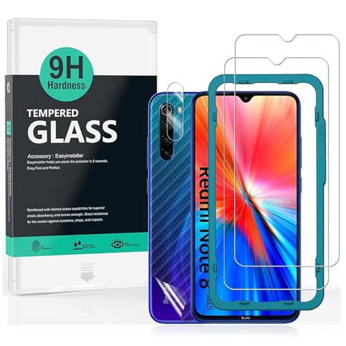 Ibywind Screen Protetor for Redmi Note 8 Pro [Pack of 2] with Camera Lens Tempered Glass Cover,Back Carbon Fiber Skin Cover,Including Easy Installation Kit