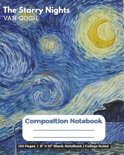 Composition NoteBook: With Van Gogh Starry Night Art cover. 8" X 10 " , College Ruled , 120 pages Blank Note book . Aesthetically Designed Cover
