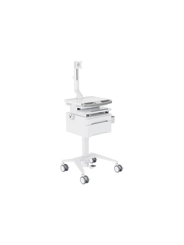 Multibrackets M Basic cart - for LCD display / keyboard / mouse / notebook - with drawer fixed arm - white silver 7.5 kg 100 x 100 mm